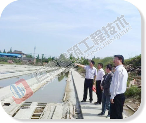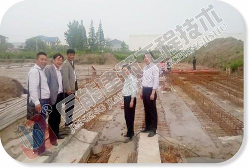 东台市建设设计院汪立新院长与建设部门工作人员到镇建设大楼平移现场,对新址大楼的基础施工工程进行验收