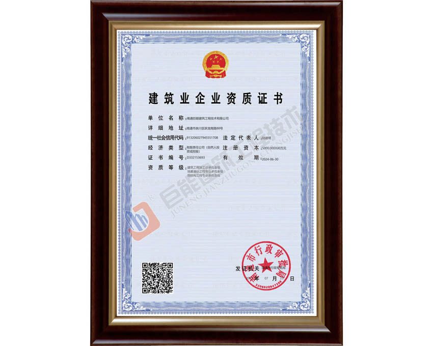 > 走进巨能 > 企业资质