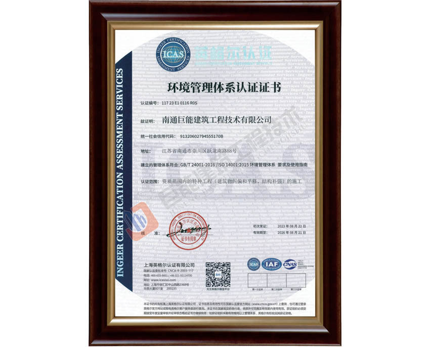 环境管理体系认证证书